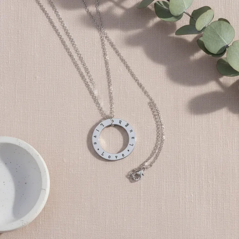 Engraved Circlular Necklace – Silver