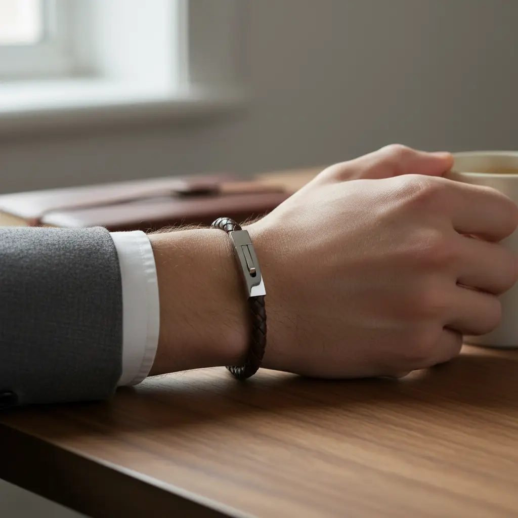 Ohiru Leather & Stainless Steel Mens Bracelet – Black