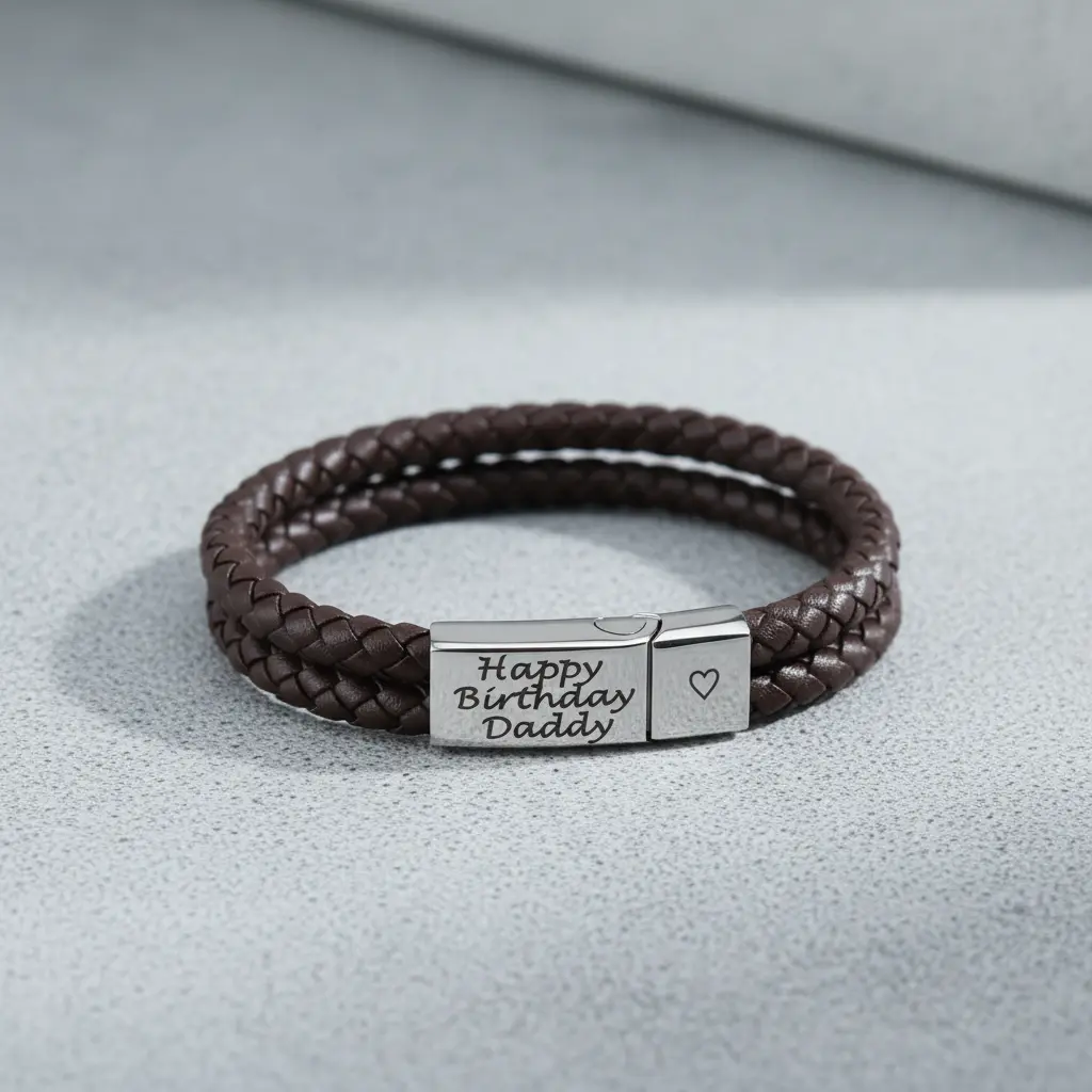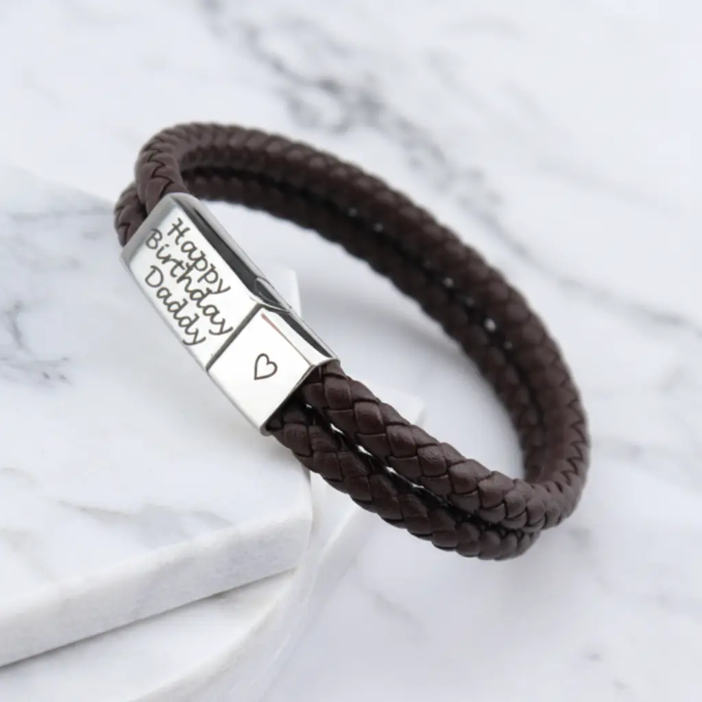 • Plaid Leather with a polished stainless Steel Clasp