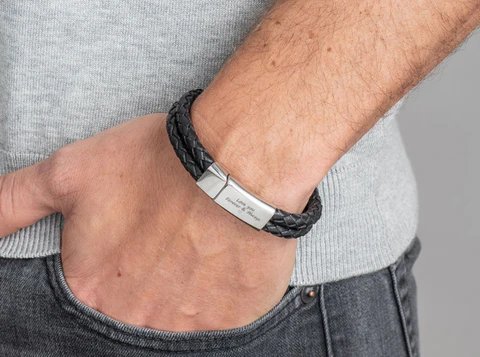 Absolutely stunning bracelet! The braided texture looks so stylish, and the engraving adds a personal touch. Gave it to my partner for his birthday, and he loved it!